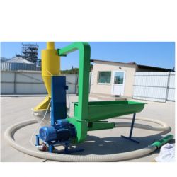 Le broyeur à grains industriel haute performance d’une puissance de 18,5 kW pour les grandes exploitations est équipé d'un aspirateur pour matières premières et d'un cyclone intégré. L'objectif principal est de broyer les cultures pour la préparation d'aliments pour les animaux de la ferme.