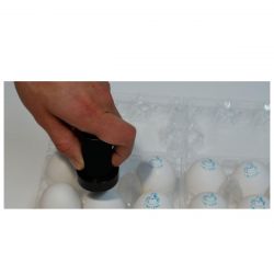 Applications Tamponnage manuel œuf par œuf dans une boite ou une alvéole Tamponnage d'un logo ou d'un code de traçabilité sur des petits œufs
