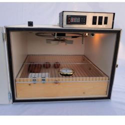 Cette couveuse est conçue spécialement pour d’éclosion des 3 derniers jours d'un cycle d’élevage. La couveuse est équipée avec système spécial pour une bonne répartition de la chaleur. La température est réglée automatiquement et est réglable par panneaux digitale.