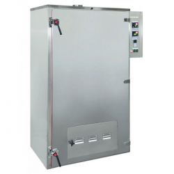 Un fumoir alimentaire à chaud pour grosse production qui associe parfaitement fumage traditionnel à la sciure de bois et haute technicité : commandes électroniques, réglage et affichage digital des températures .... Doté d'une grande chambre à fumée tout inox pouvant recevoir jusqu'à 8 grilles de cuisson de 900 x 660 mm pour les produits fumés à plat ou des tiges avec crochets pour les produits à suspendre, le fumoir électrique professionnel offre un réel confort de travail et une capacité de chargement optimale.
