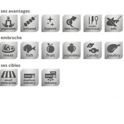 Cet appareil est spécialement dédié à la production de brochettes à plus petite échelle pour faciliter le boucher ou d’autres entreprises qui les produisent.