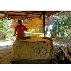 La poêle à torréfier géante est adaptée pour brunir et torréfier le manioc réduit en semoule ainsi que tous types de céréales afin dans découvrir leurs arômes.