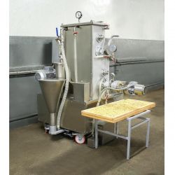 Cette presse à pâtes est destinée à la production de pâtes courtes à extrusion sous vide. La longueur du produit est d’un maximum de 40 mm.