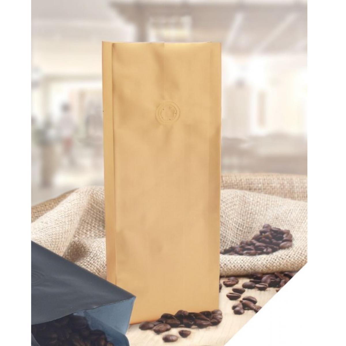 Grâce à l'utilisation d'un film composite aluminium de haute qualité à l'aspect mat noble, il a de bonnes propriétés barrières. Le sac à soufflet latéral peut être simplement scellés après le remplissage. Il est polyvalent et possède une valve de protection aromatique fiable et élevée.