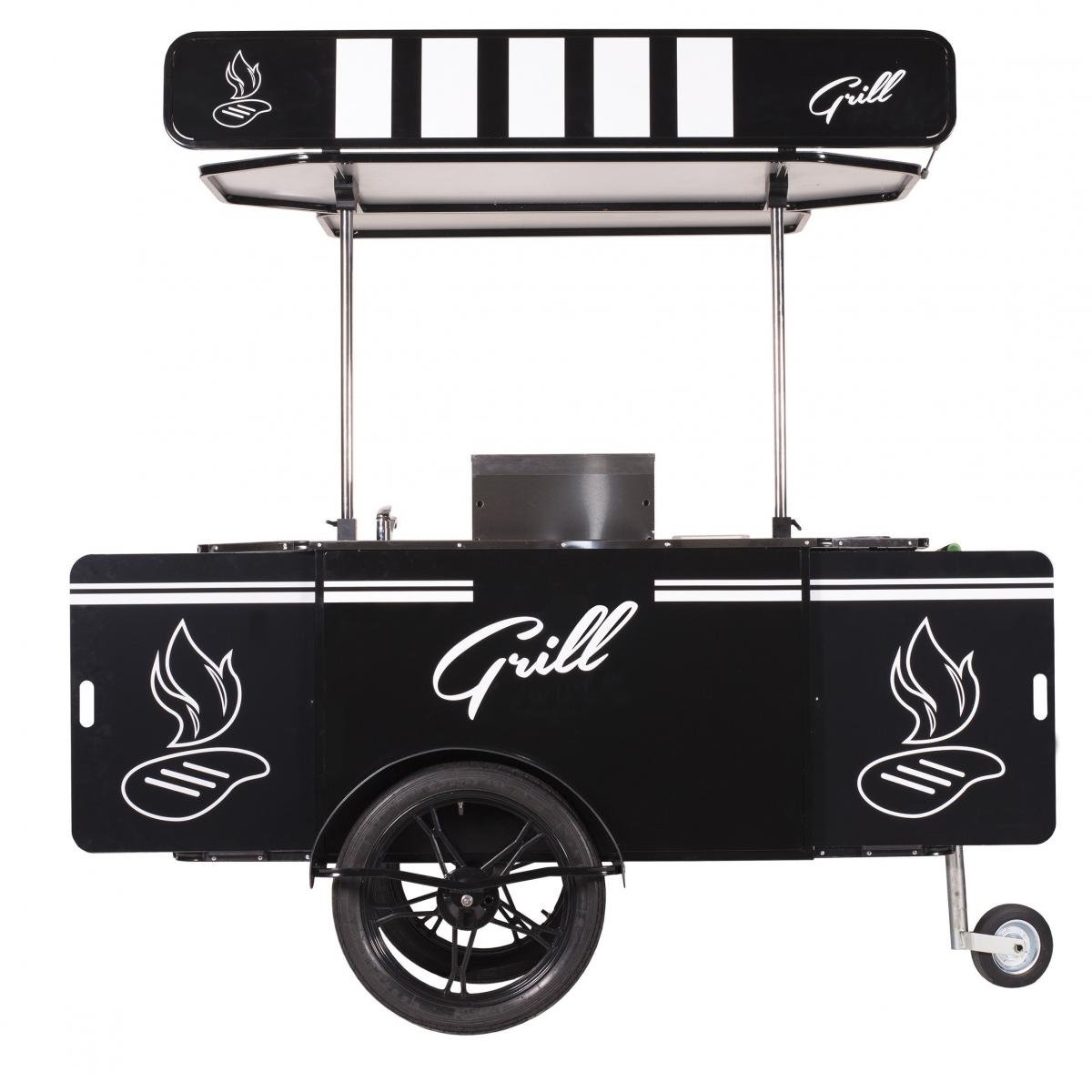 Ce chariot de vente de nourriture grillée est un véritable barbecue et gril sur roues conçu pour être transporté de deux manières également ergonomiques: attaché à une bicyclette ou manuellement, comme chariot de poussée. Idéal pour la préparation et la vente de délicieux plats de grillades ou de grillades, le chariot est équipé d'un gril alimenté au GPL ou au gaz, d'un évier et d'un grand espace de cuisson ...